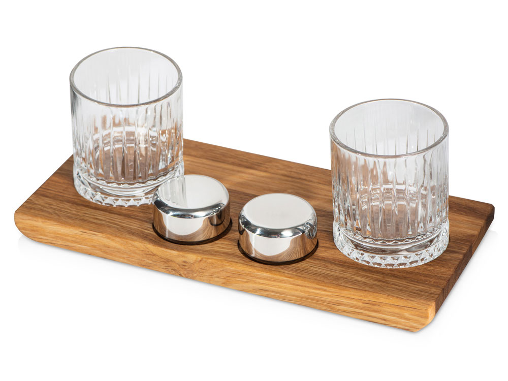 Набор Master of Wine состоит из дубовой подставки для сета, двух бокалов для крепких напитков и двух шайб из нержавеющей стали. Весь набор упакован в картонную фирменную коробку бренда — можно смело дарить! Бокалы выполнены из содового стекла, предназначены для подачи виски и коктейлей на его основе. Утолщенное дно помогает дольше сохранять температуру напитка, не нагреваясь, что благоприятно влияет на вкус виски, помогая ему раскрыться. Рельеф бокала напоминает огранку драгоценного камня, многократно преломляя свет, проходящий сквозь виски. Шайбы из нержавеющей стали 304 марки не искажают вкус и запах напитка. Благодаря им вы сможете насладиться холодным крепким напитком, не разбавляя его кубиками льда. Охлаждающая жидкость внутри шайб позволяет им дольше сохранять низкую температуру. Для сервировки в набор входит дубовый поднос с выемками под бокалы и шайбы. - только качественные материалы: стекло, нержавеющая сталь 304 марки, дуб - готовый сет для крепких напитков — поставляется в фирменной упаковке, можно дарить! - продолжает стиль бренда Master of Wine: можно сочетать с другими изделиями бренда Жидкость внутри шайб абсолютно безопасна: на 95% она состоит из воды, на 5% — из глицерина, а надежная конструкция не дает содержимому просочиться наружу. Как использовать: 1) Вымойте шайбы и затем поместите в морозильную камеру на 3-6 часов перед использованием; 2) Аккуратно поболтайте напиток с помещенной в него шайбой в течение 5 секунд перед первым глотком; 3) Можно использовать многократно, перед каждым использованием необходима очистка шайбы; 4) Шайбу можно мыть только вручную. Гравировка (CO2 лазер) (Без чернения) на данный товар осуществляется бесплатно. Оплачивается только настройка оборудования в размере 1100 рублей на весь тираж.