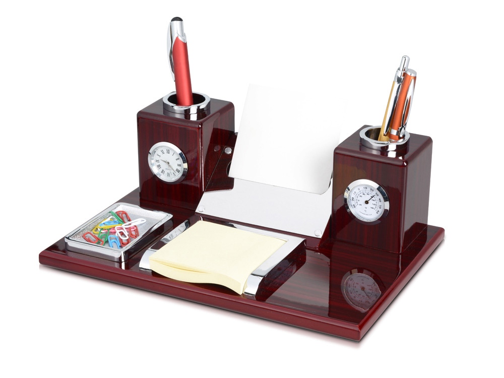 Настольный прибор Петронас: часы, термометр, подставки под ручки, визитки, скрепки, бумажный блок