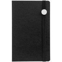 Зауженный ежедневник с круглым металлическим шильдом на резинке.