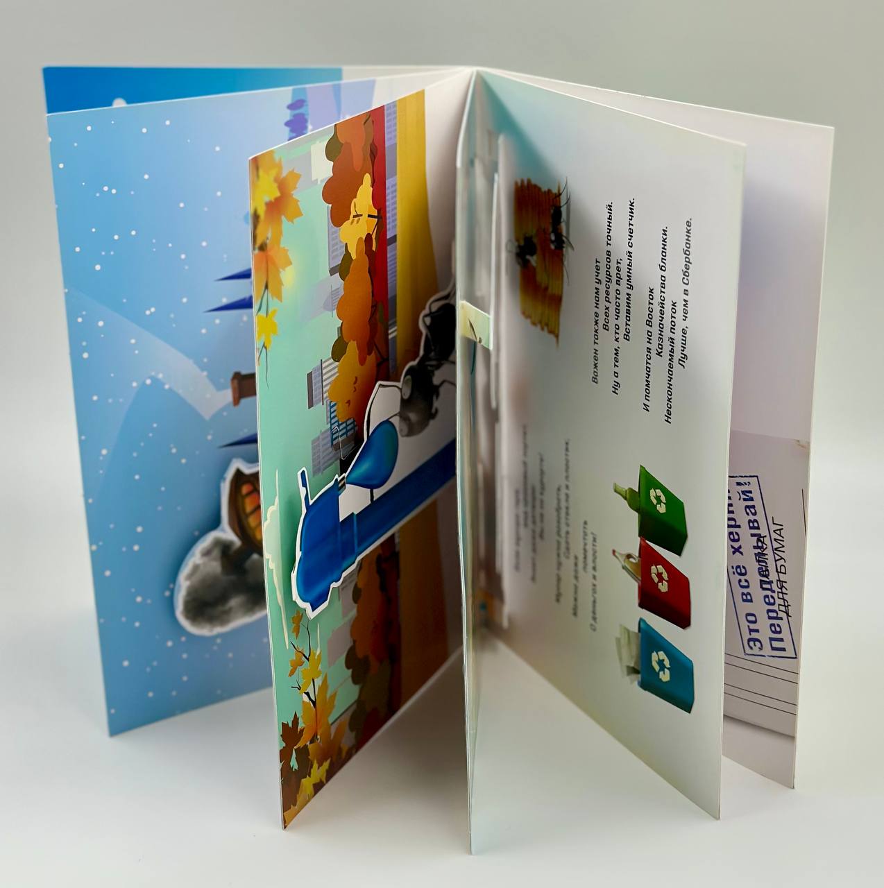 • Для бизнеса: Яркая и креативная pop-up визитка, брошюра о компании или каталог продукции, который точно заметят и запомнят.