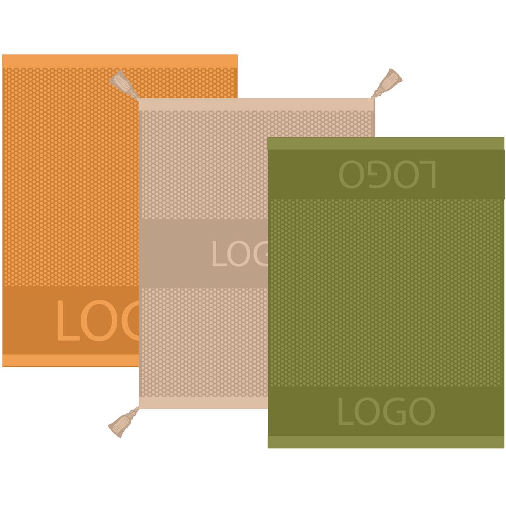 Плед с вывязанным логотипом и рельефным узором в фирменном цвете вашей компании.