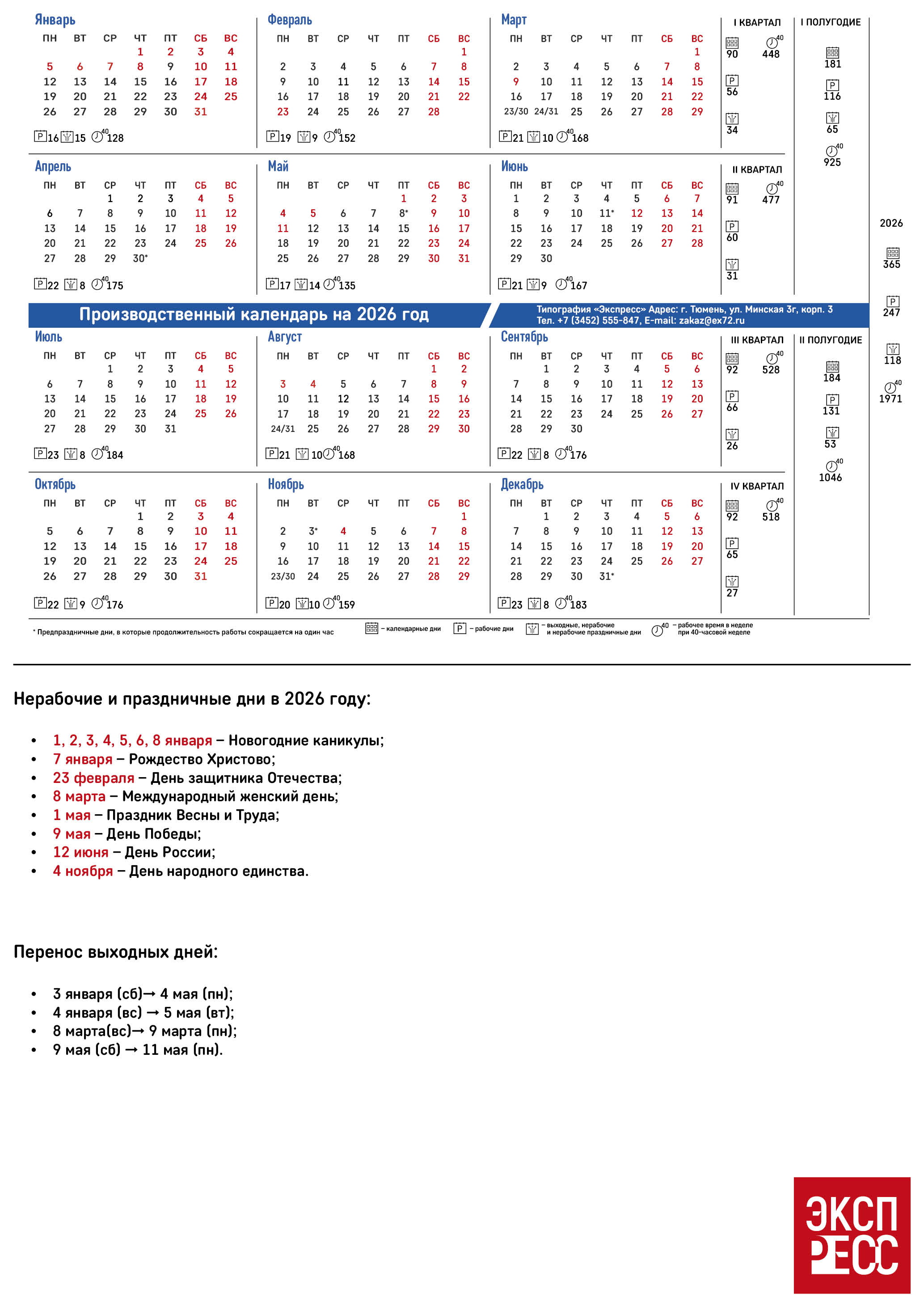 Производственный календарь